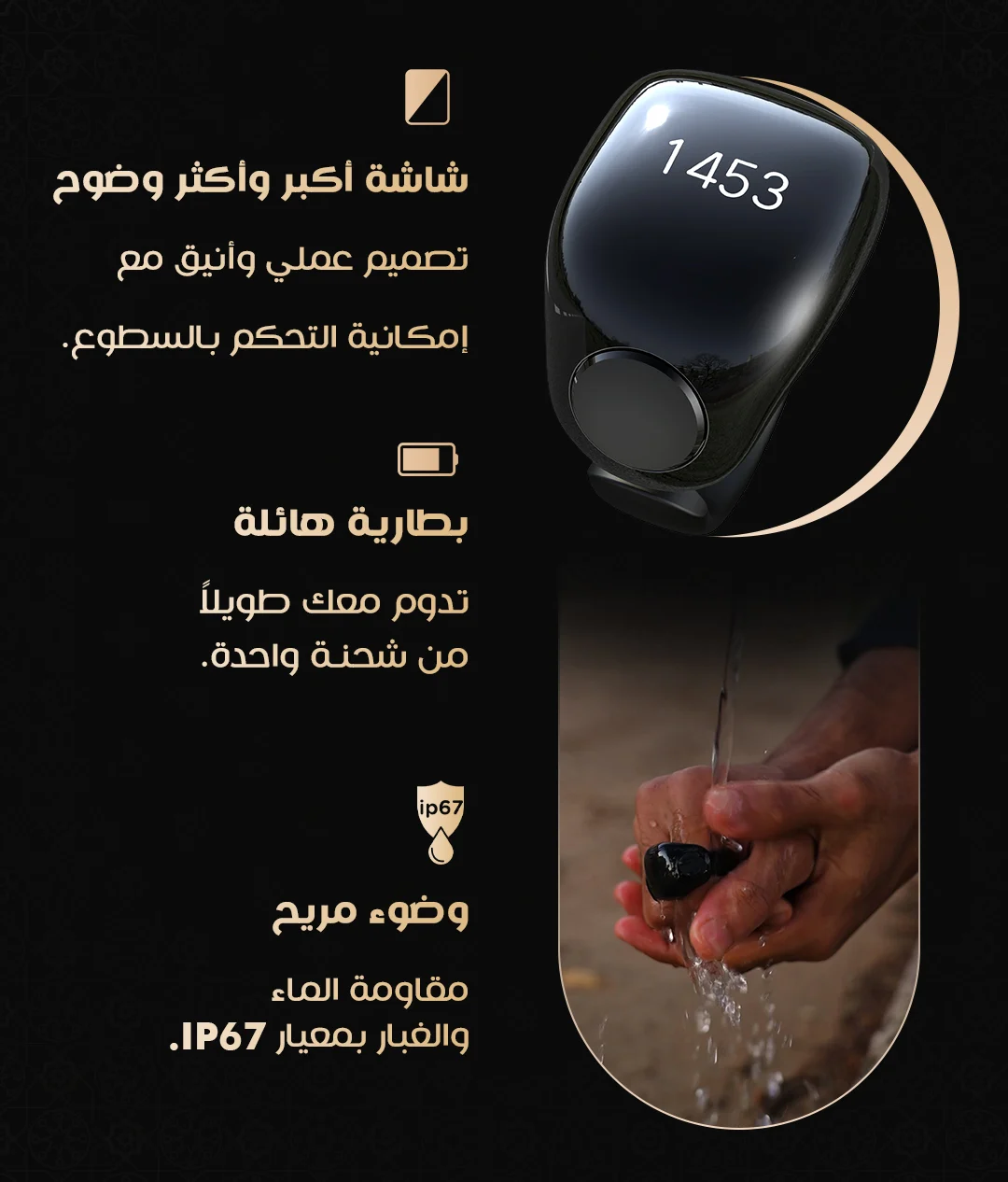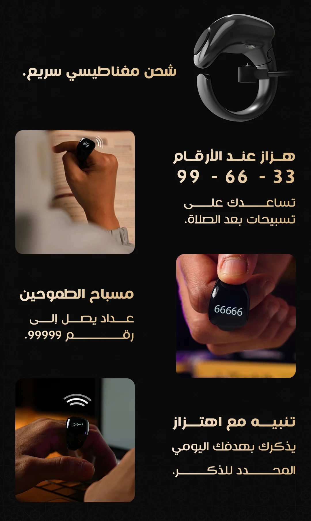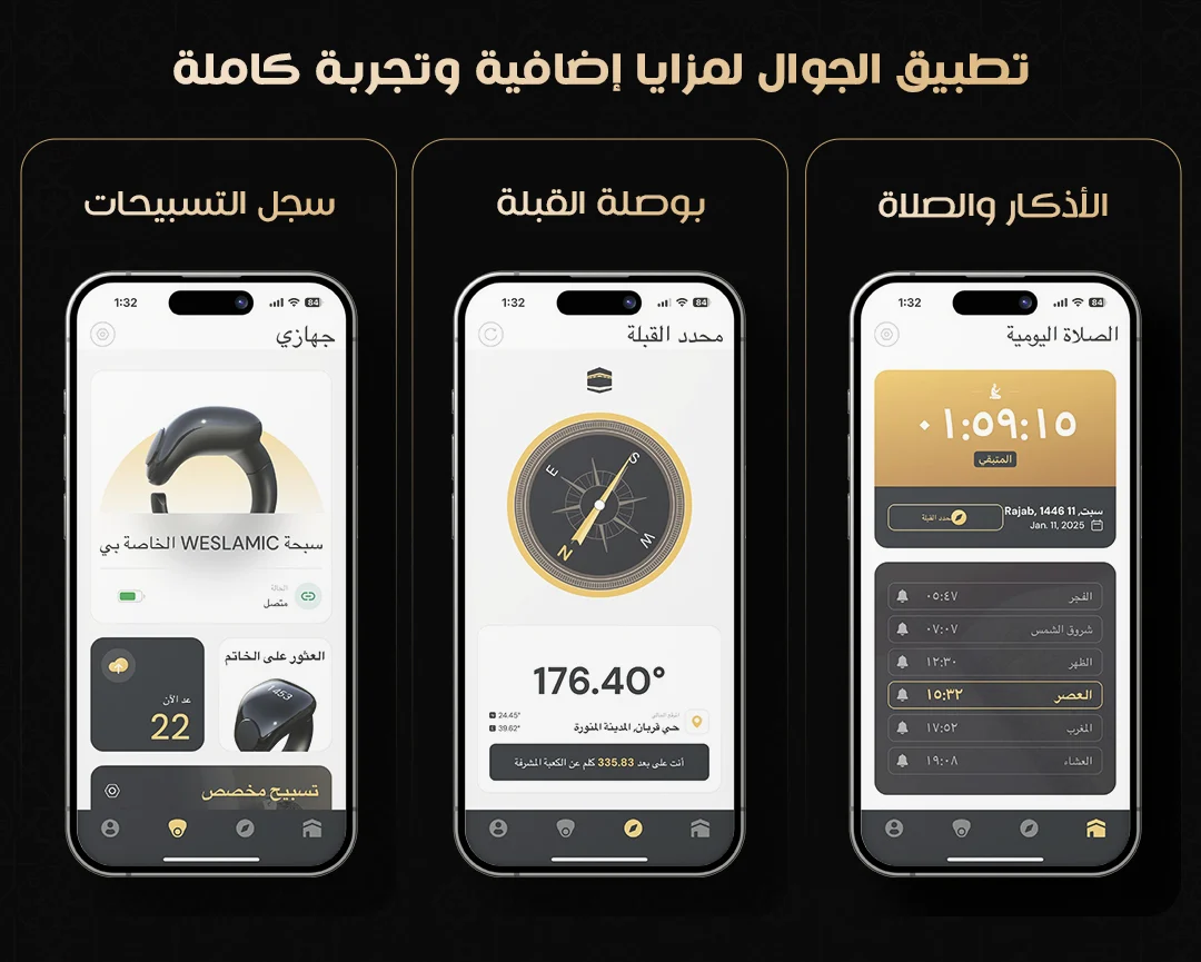 خاتم رجالي ذكي من Weslamic – iTasbih Faith+، يجمع بين التصميم العصري والتقنيات الذكية لتسهيل التسبيح اليومي ومتابعة عبادتك بسهولة وأناقة.